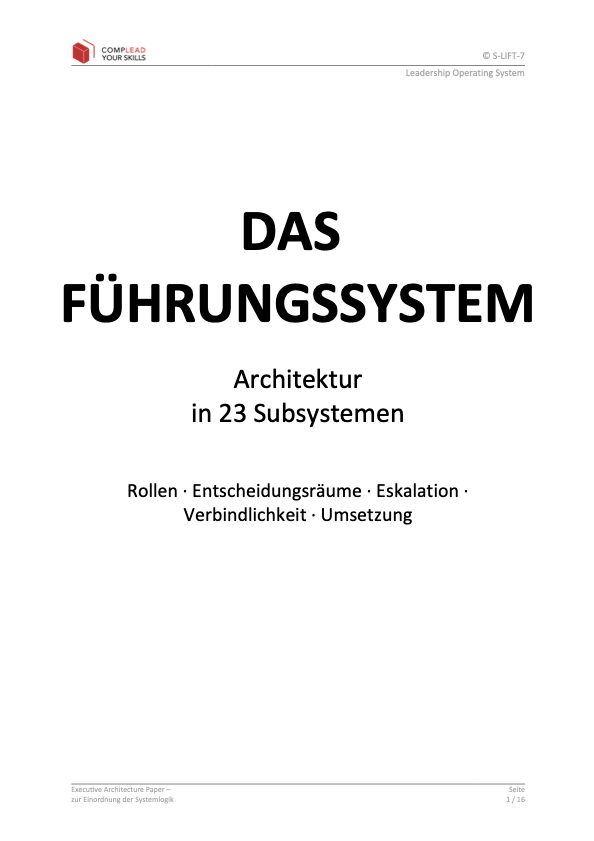 Auf dieser Seite finden Sie ausgewählte Unterlagen zur Einordnung von Führung als System. Sie zeigen, wie Entscheidungen wirksam werden, wie Verantwortung bindet, wie Eskalation funktioniert und wodurch Verbindlichkeit im Alltag entsteht.